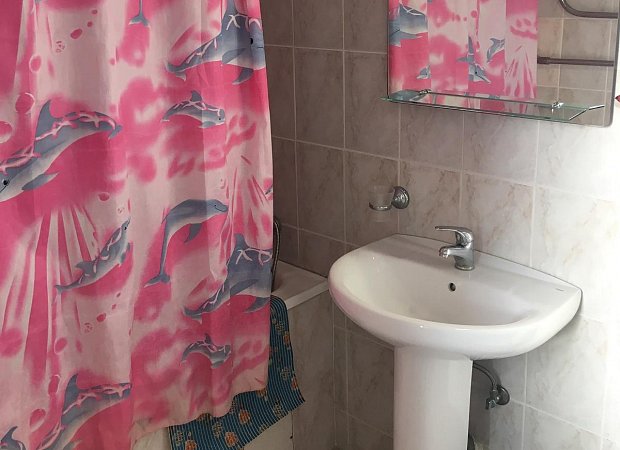 Санузел: ванна, унитаз, раковина, полотенца, гигиенические средства