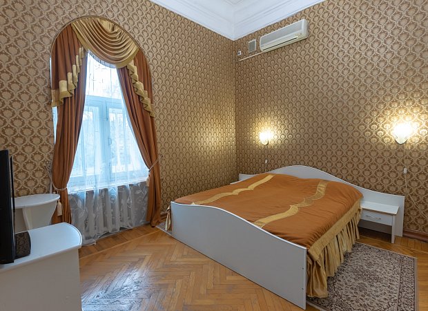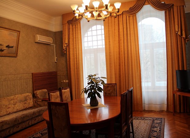 В номере: две односпальные или большая двуспальная кровать, телевизор, кабельное ТВ, холодильник, фен, кондиционер, туалетный столик, тумбы, шкаф для одежды, сушилка для белья, набор посуды, чайник, чайный набор, Wi-Fi в общественных зонах