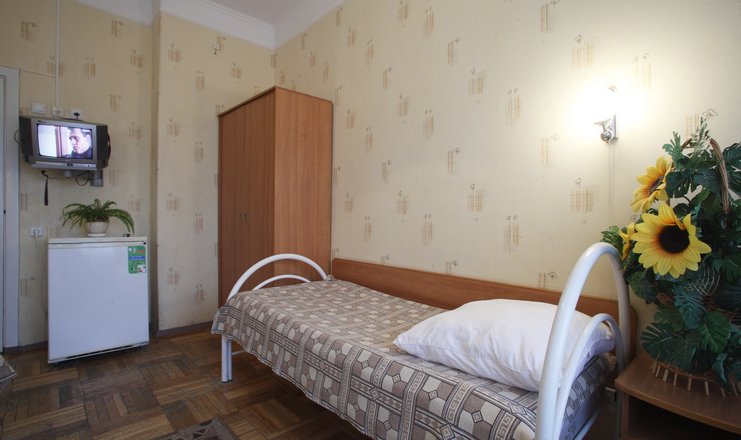 В номере: кровати односпальные, прикроватные тумбочки, стол, стул, шкаф, телевизор, холодильник