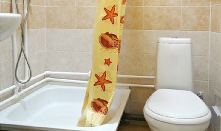 Санузел: с душем (поддон), раковина, унитаз, сушилка