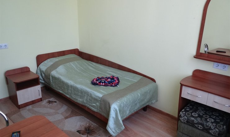 В номере: зеркало, кровать односпальная, прикроватная тумбочка, стол, столик туалетный, стул, шкаф-купе