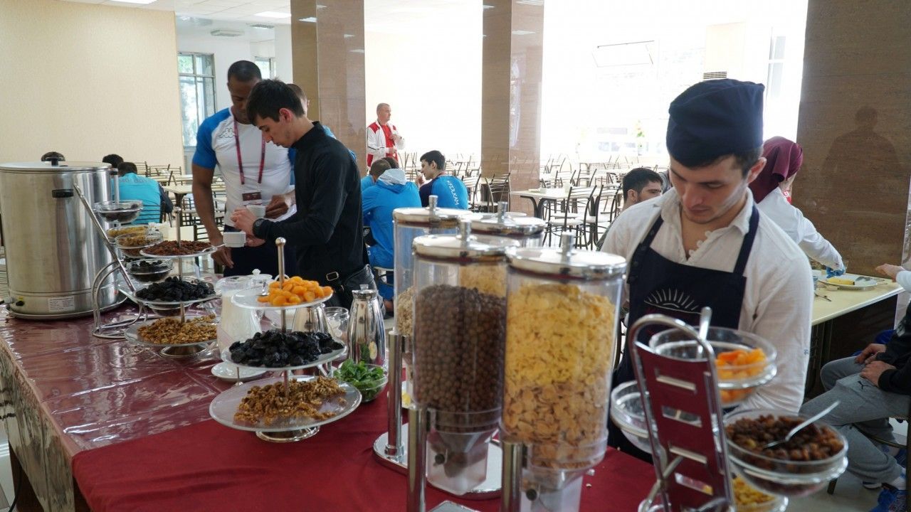В санатории «Каспий» (Дагестан) организовано трёхразовое питание по системе «шведский стол». Огромное разнообразие блюд не оставит равнодушным даже самого искушенного гурмана. В меню обязательно включены овощи и фрукты. У нас вы научитесь питаться сбалансированно и правильно, насыщая свой организм необходимыми витаминами и минералами