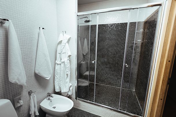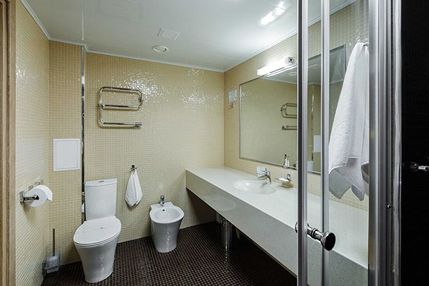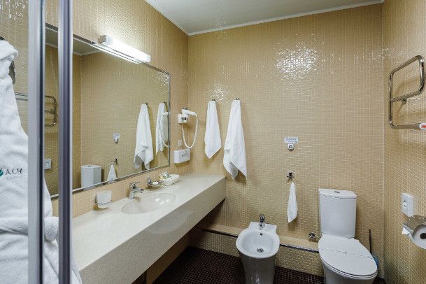 Санузел: душ, раковина, унитаз, биде, фен, гигиенические принадлежности