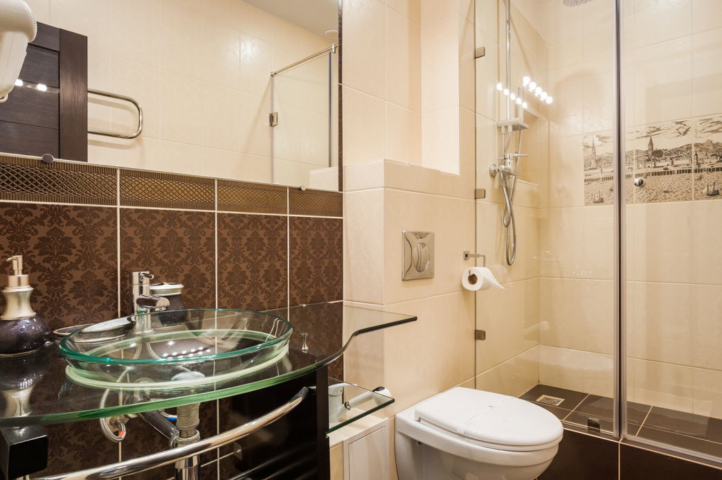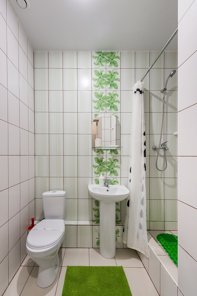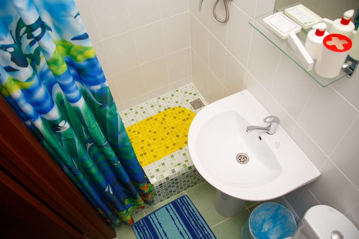 Санузел: набор полотенец, халат для каждого гостя, средства личной гигиены, фен, душевая кабина.
