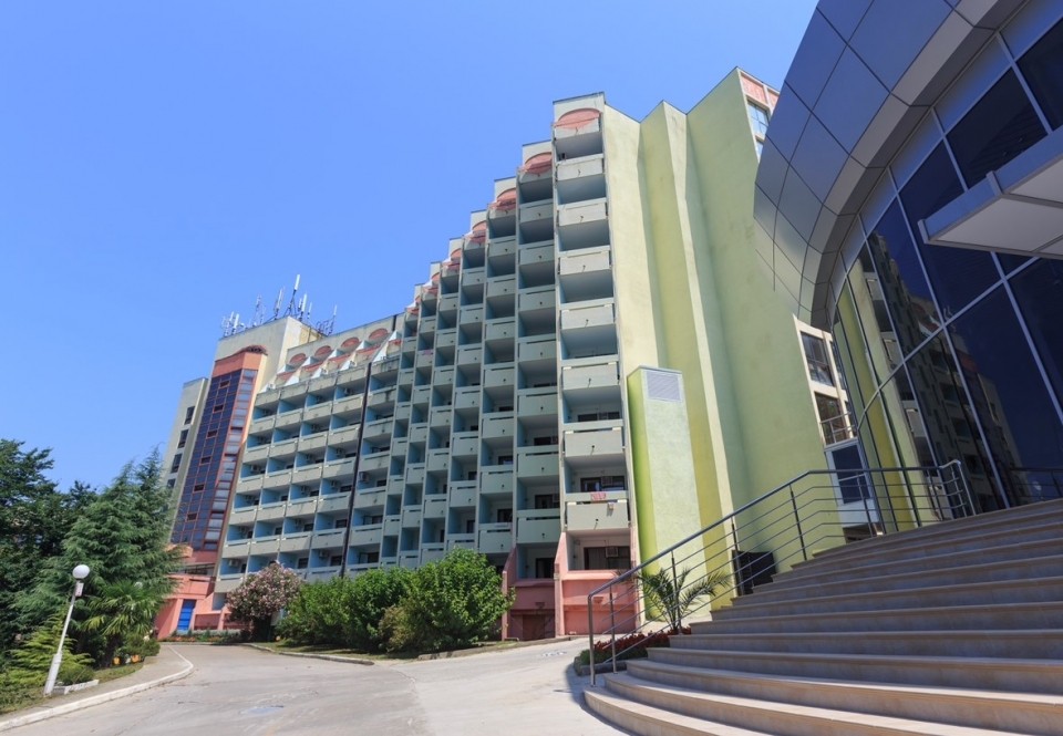 Пляж: галечный оборудованный, в 300 м от санатория. На пляже: лежаки, теневая зона, кабинки для переодивания, душевые, медпункт и спасательный пункт, водные развлечения (катер, «банан», услуги дайвинга).