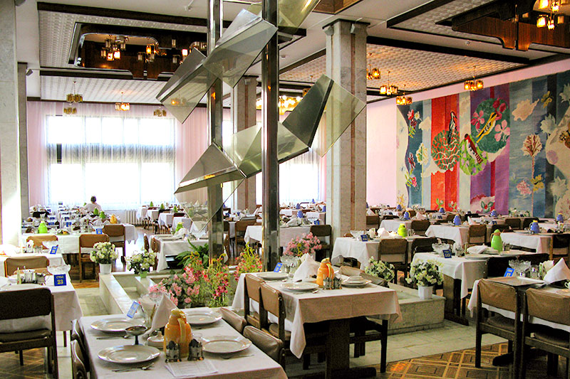 Просторная, светлая и уютная столовая санатория создана для приятных трапез постояльцев. С помощью заказного меню гости могут отведать различные блюда и напитки, которые имеют изысканные вкусы и неординарное оформление. Здесь организовано трехразовое правильное питание, поэтому туристы, поглощая вкусную пищу, будут сбрасывать вес и оздоравливать свой организм.