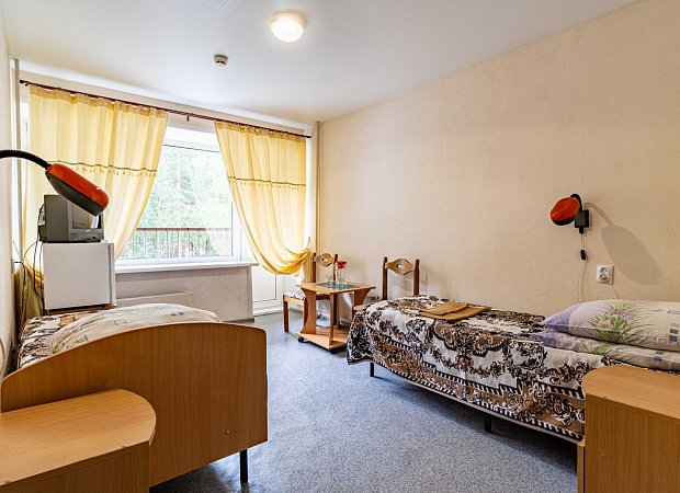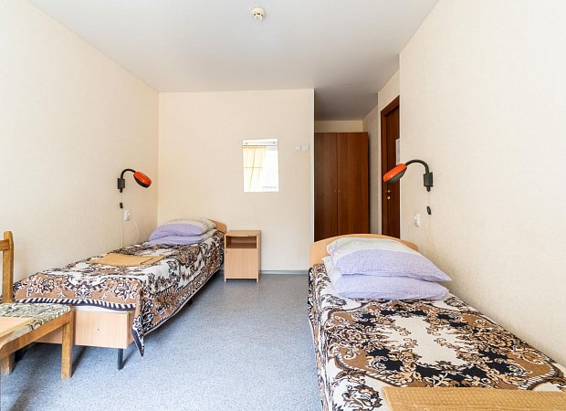 В номере: телевизор, холодильник, обогреватель, вентилятор, интернет, Wi-Fi, две полутороспальные кровати, шкаф для одежды, тумбы, стулья, диван