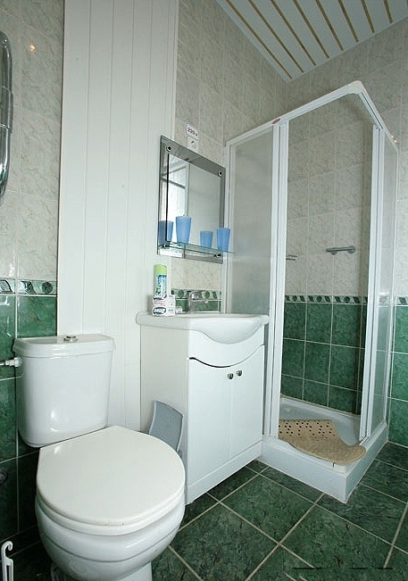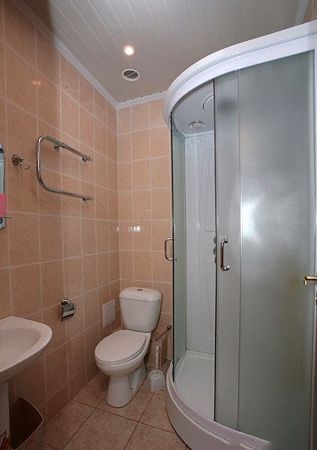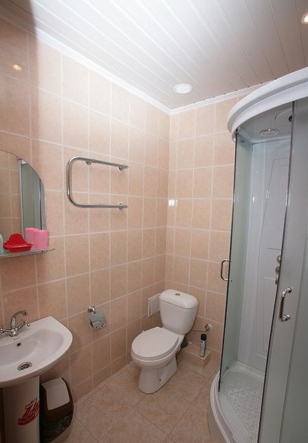 Санузел: душевая кабина, умывальник с зеркалом, фен, унитаз, персонализированная косметика (комплект на заезд), полотенцесушитель.