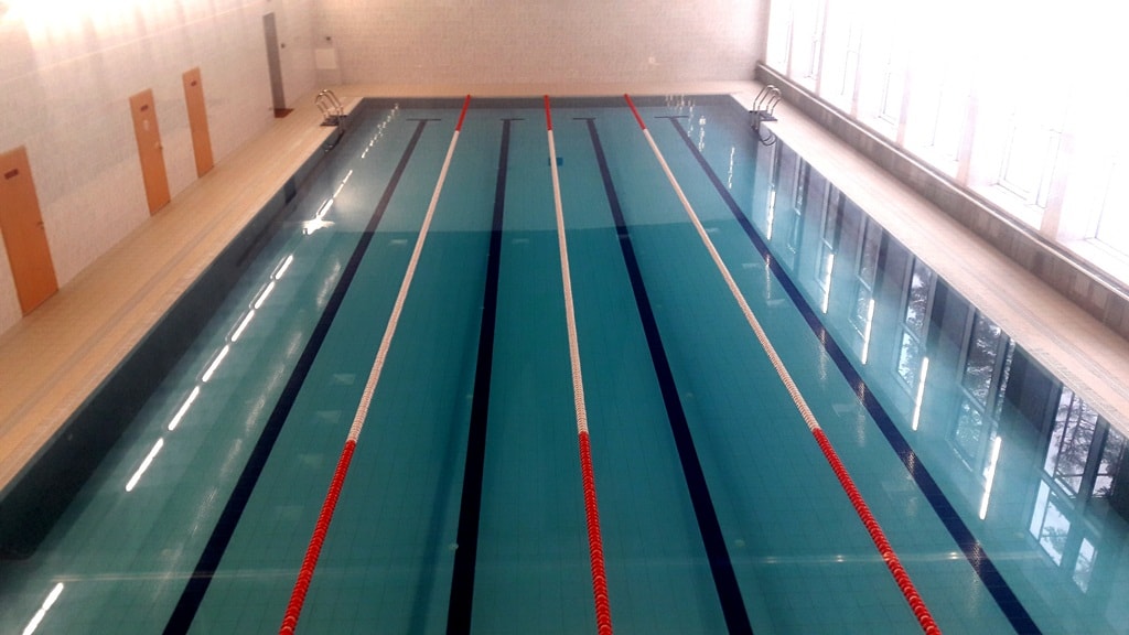 Спортивный бассейн - Площадь водного зеркала составляет 275 квадратных метров. Бассейн поделен на 4 дорожки длиной 25 метров. глубина от 110 см до 200 см.