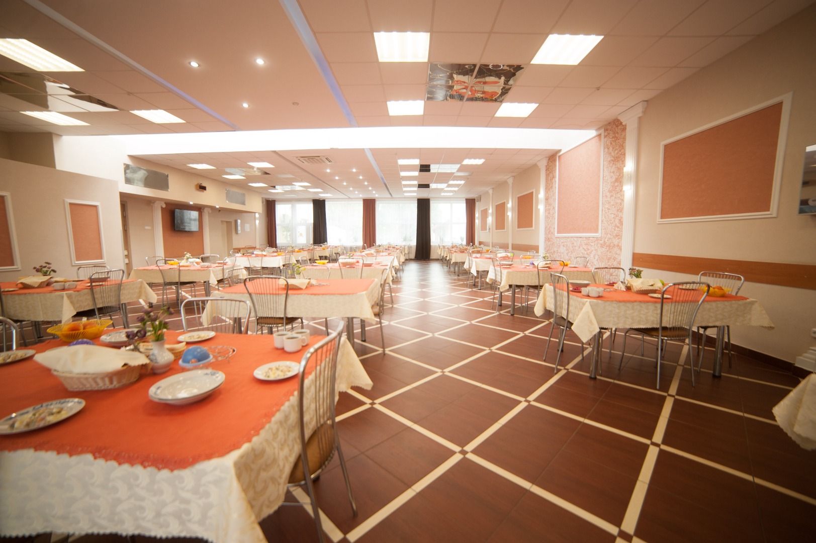 Вкусное, разнообразное, качественное питание – одна из самых важных составляющих услуг нашего санатория «Ясельда». Доставить качественную продукцию, вкусно приготовить, сохранить максимум питательных веществ и витаминов, красиво сервировать и вовремя подать приготовленную пищу гостям - со всеми этими задачами прекрасно справляется коллектив санатория «Ясельда».Интерьер обеденного зала в теплой цветовой гамме располагает к приему пищи, особенного когда в нем присутствует музыкальное сопровождение. Осуществляется контроль качества питания на всех этапах приготовления пищи, от получения сырья до готовой продукции.