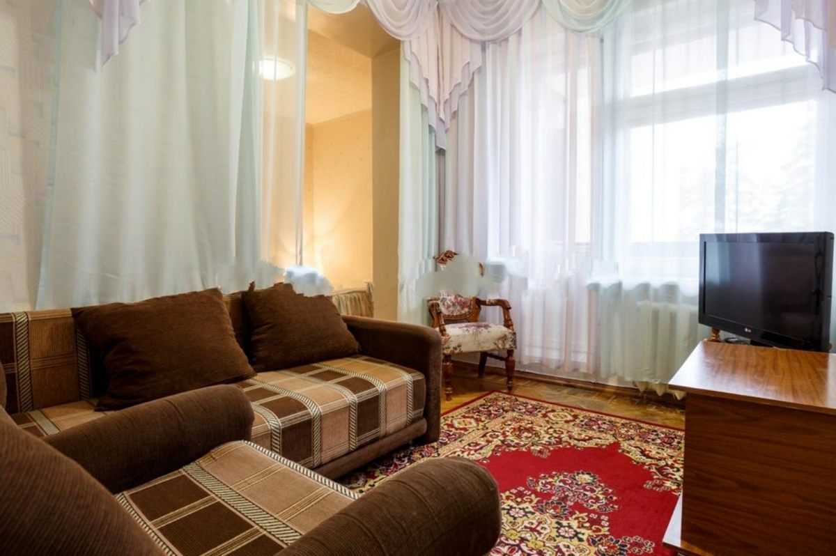 В номере: две комнаты, в одной комнате – мягкий уголок (уголок раскладывается), журнальный столик; в другой комнате – спальня с двуспальной кроватью, прикроватная тумбочка, шкаф, телевизор, телефон, холодильник, электрический чайник, чайный сервиз