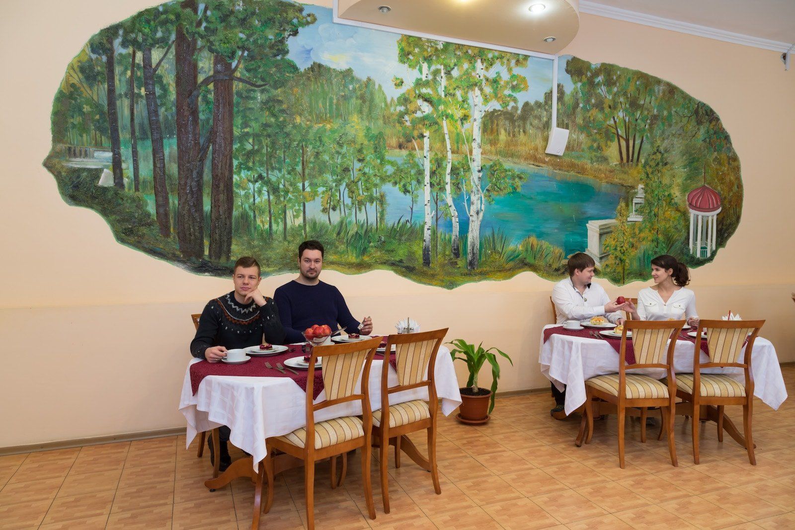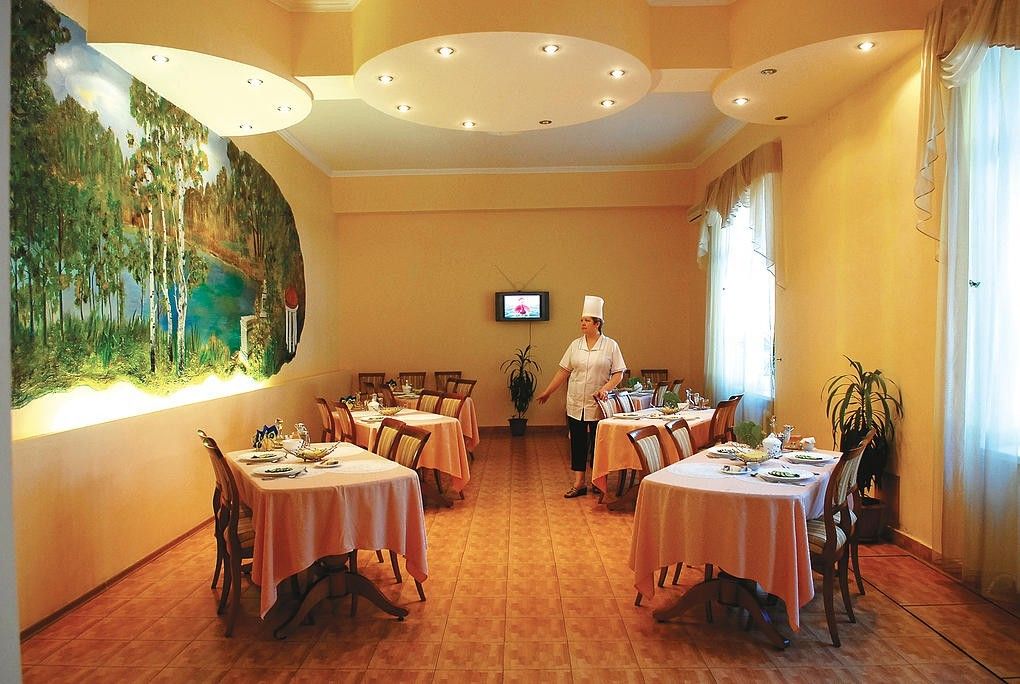 В санатории организовано полноценное сбалансированное 4-х разовое питание по системе «меню-заказ». На столах у отдыхающих круглый год витаминные салаты, свежие овощи, фрукты и зелень, качественное мясо и натуральная молочная продукция. К удовольствию гостей всегда вкусная и свежая выпечка. Для больных сахарным диабетом дробное дополнительное диетическое питание