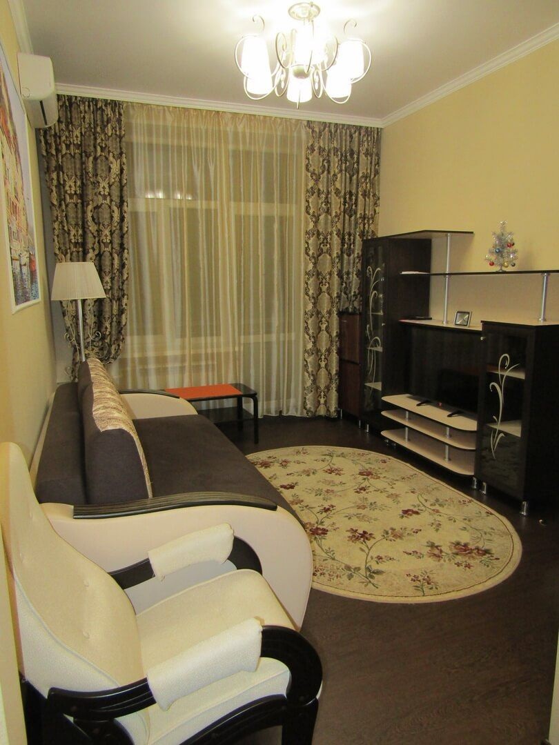 В номере: современный интерьер, спальня, мягкая мебель, гостиная, кухня с холодильником, кондиционер, телевизор, шкаф для одежды.