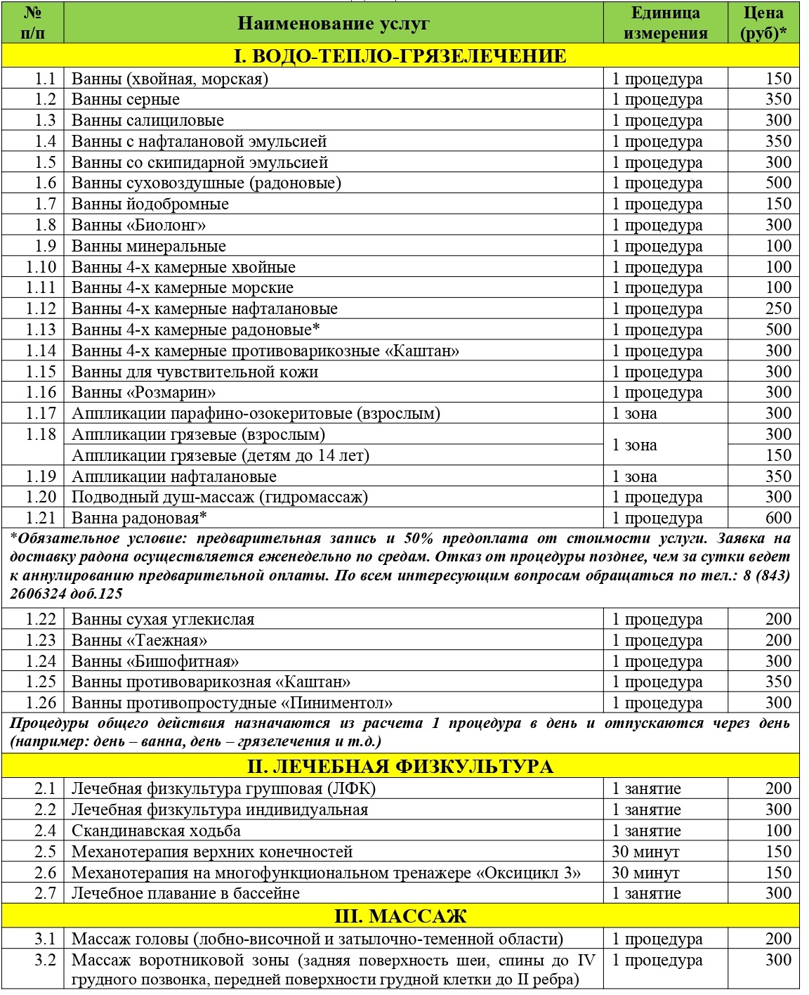 «Сосновый Бор» - стоимость платных медицинских услуг в Казани