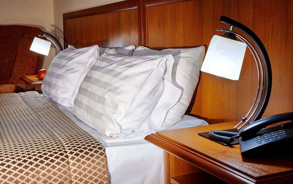 В номере: вешалка, кровати односпальные или двуспальная кровать, прикроватные тумбочки, стол, столик журнальный, стулья, шкаф, сейф, телевизор ЖК, телефон, холодильник, чайный набор посуды, электрочайник
