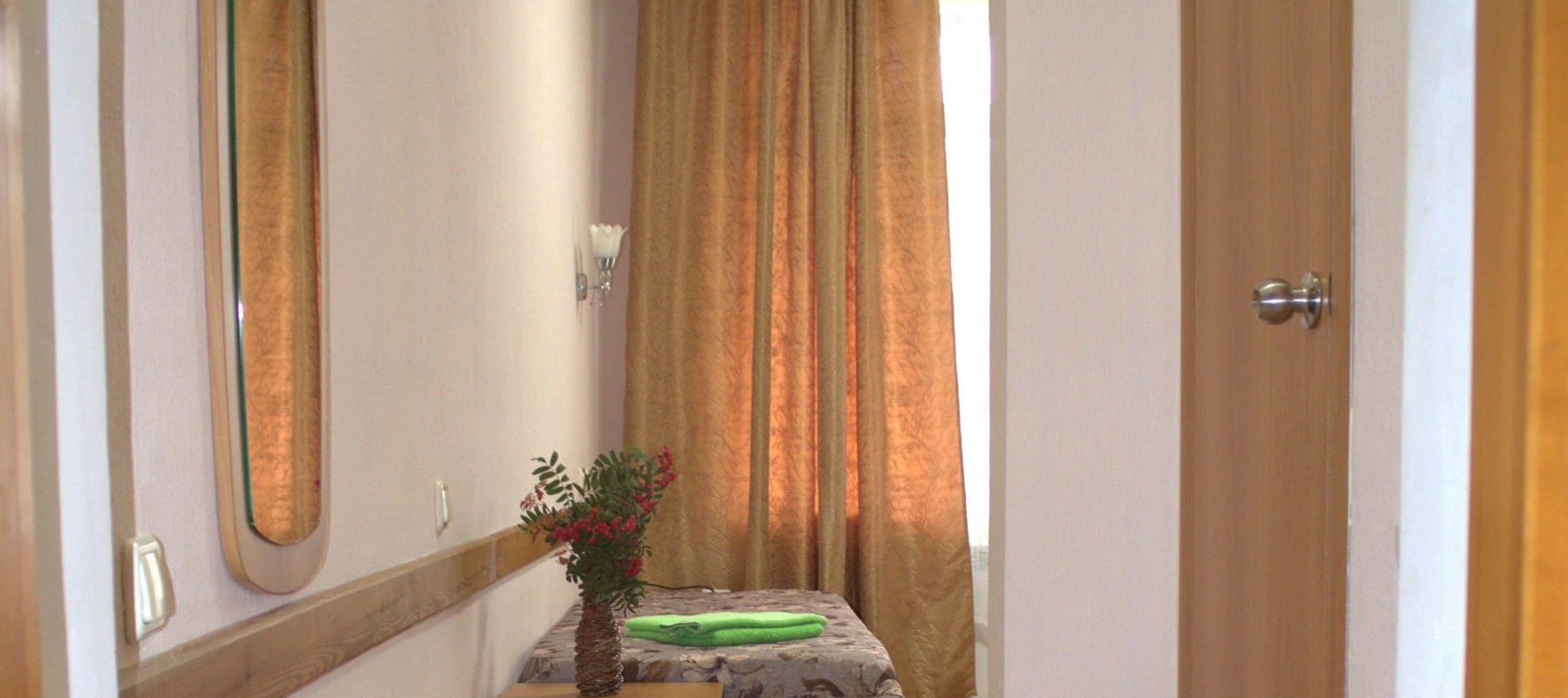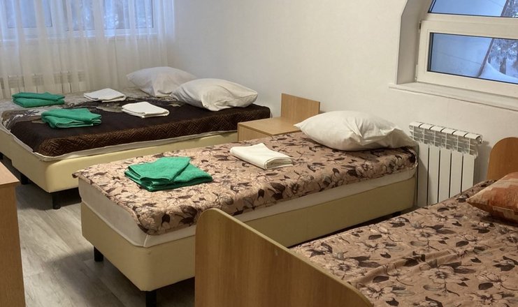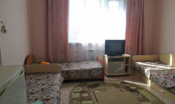 В номере: кровати полутораспальные, прикроватные тумбочки, шкаф, журнальный стол, телевизор, холодильник