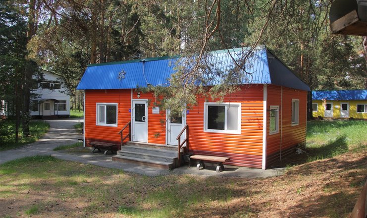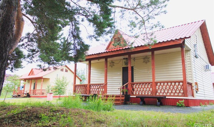 В коттедже: кровати односпальные, кровать двуспальная, стол, столик журнальный, стулья, шкаф, мягкая мебель, обеденный гарнитур, микроволновая печь, телевизор, холодильник