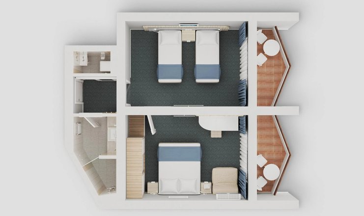 Оснащение номера: зеркало, кровати односпальные, кровать двуспальная, прикроватные тумбочки, стол: лампа настольная, стул, шкаф-купе, гладильная доска, мини-холодильник, сейф, сплит-система, телевизор ЖК: 32 дюйма, утюг, чайная станция