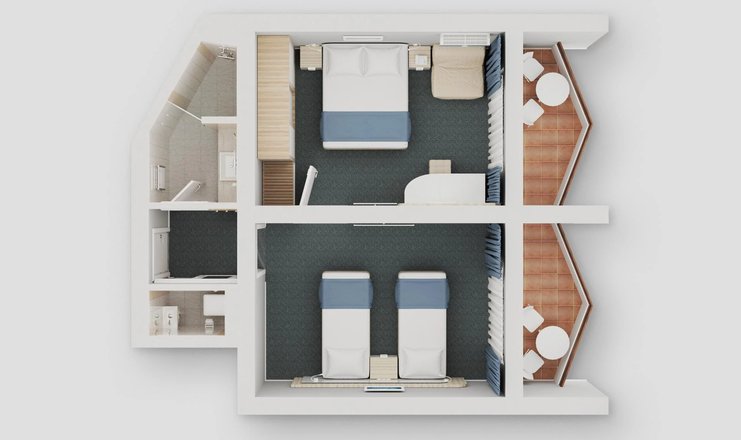 Сан/узел: 2 санузла, с душевой кабиной, тапочки, туалетные принадлежности: комплект полотенец, фен, халат