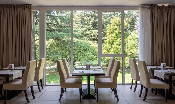Ресторанный комплекс расположен в отдельно стоящем здании, рядом с корпусом «Семейный» №1.