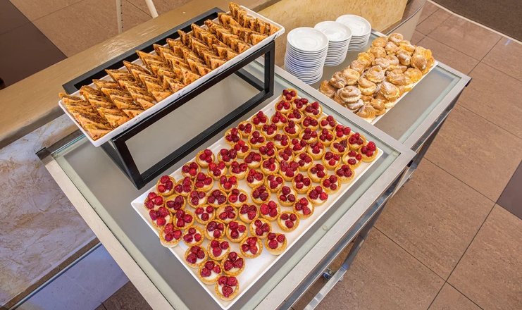 Предусмотрено диетическое питание, детское меню, усиленное питание для спортсменов, проводятся дни национальной кухни.