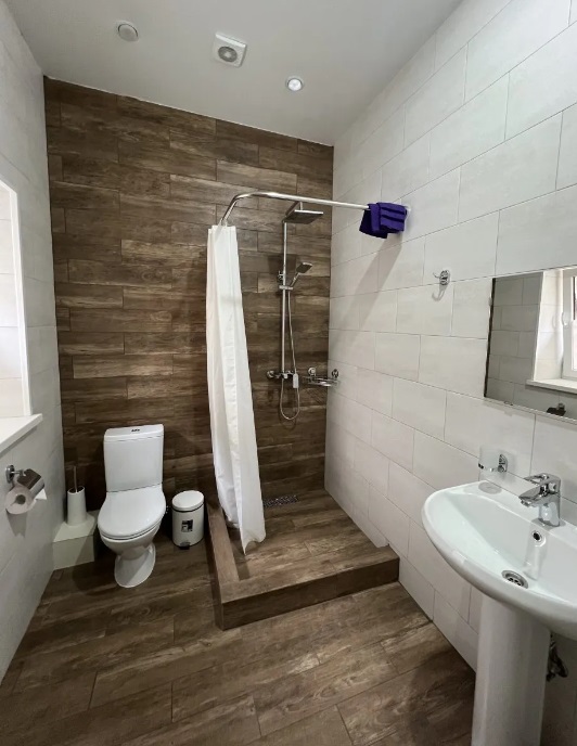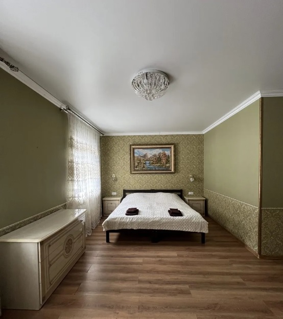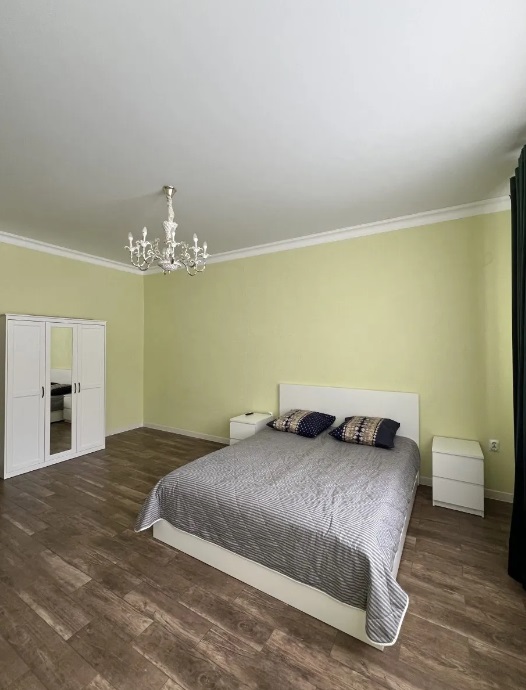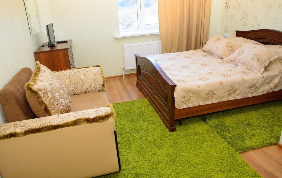 В номере: вешалка, зеркало, кресло-кровать, кровать двуспальная, прикроватные тумбочки, стол, стул, шкаф, телевизор
