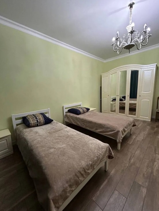 В номере: вешалка, зеркало, кровати односпальные, прикроватные тумбочки, стол, стул, шкаф, телевизор