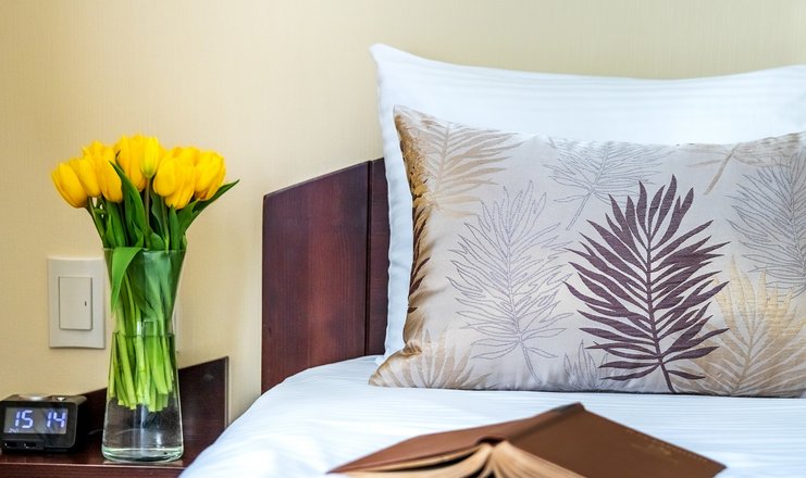 В номере: вешалка, кресло, кровать двуспальная, прикроватные тумбочки, столик журнальный, шкаф, кондиционер, кофемашина: капсульная, телевизор ЖК, телефон, холодильник, чайный набор посуды, электрочайник