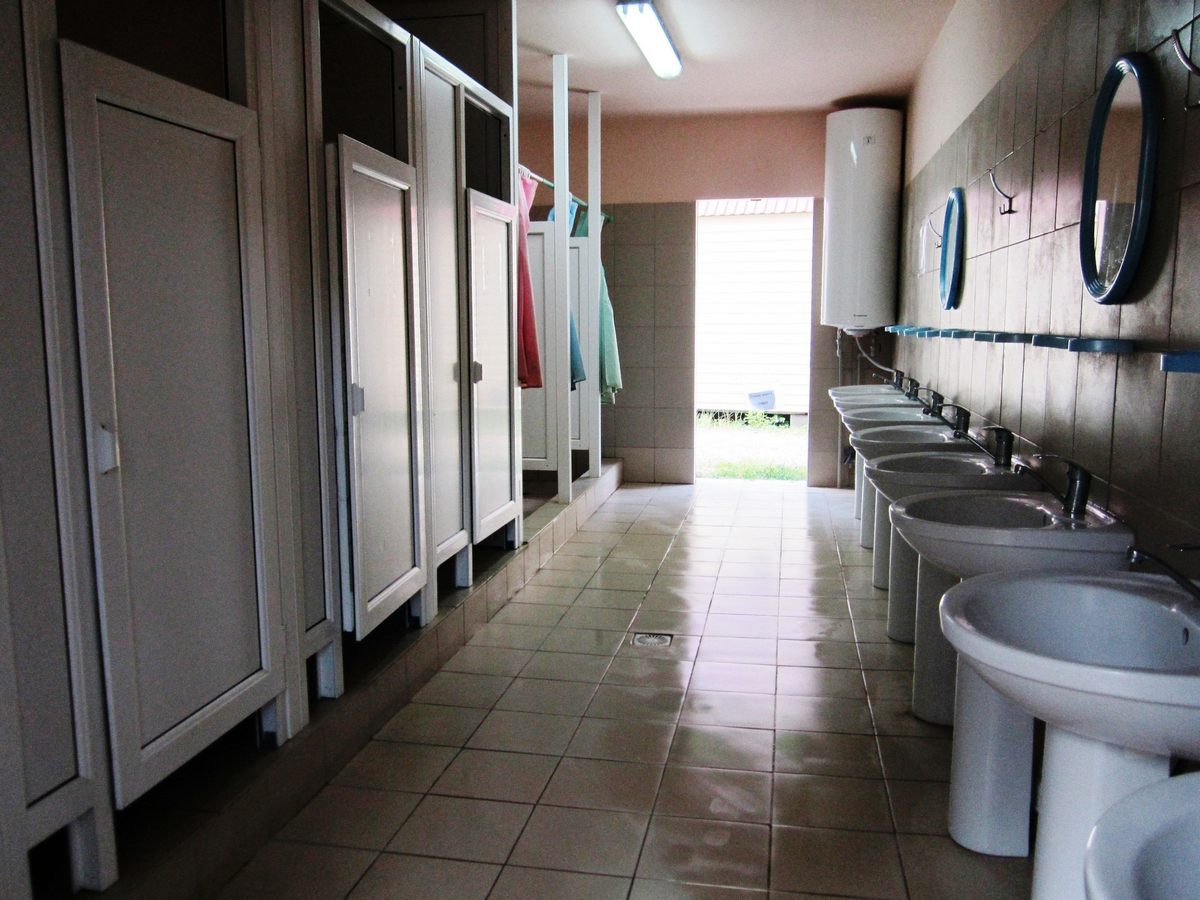 Сан/узел: общие душ, раковина, унитаз на территории