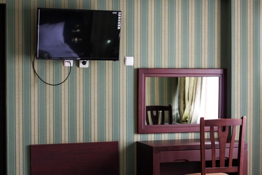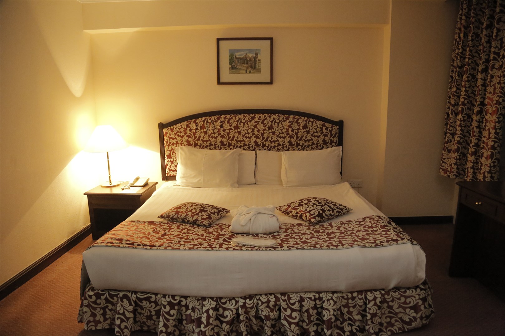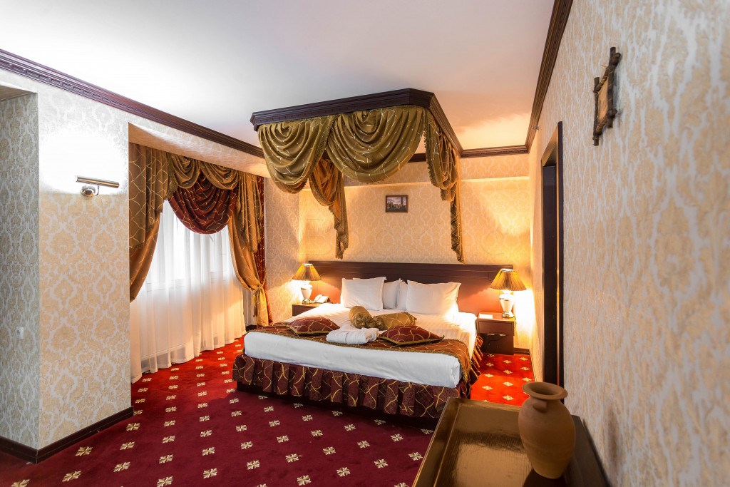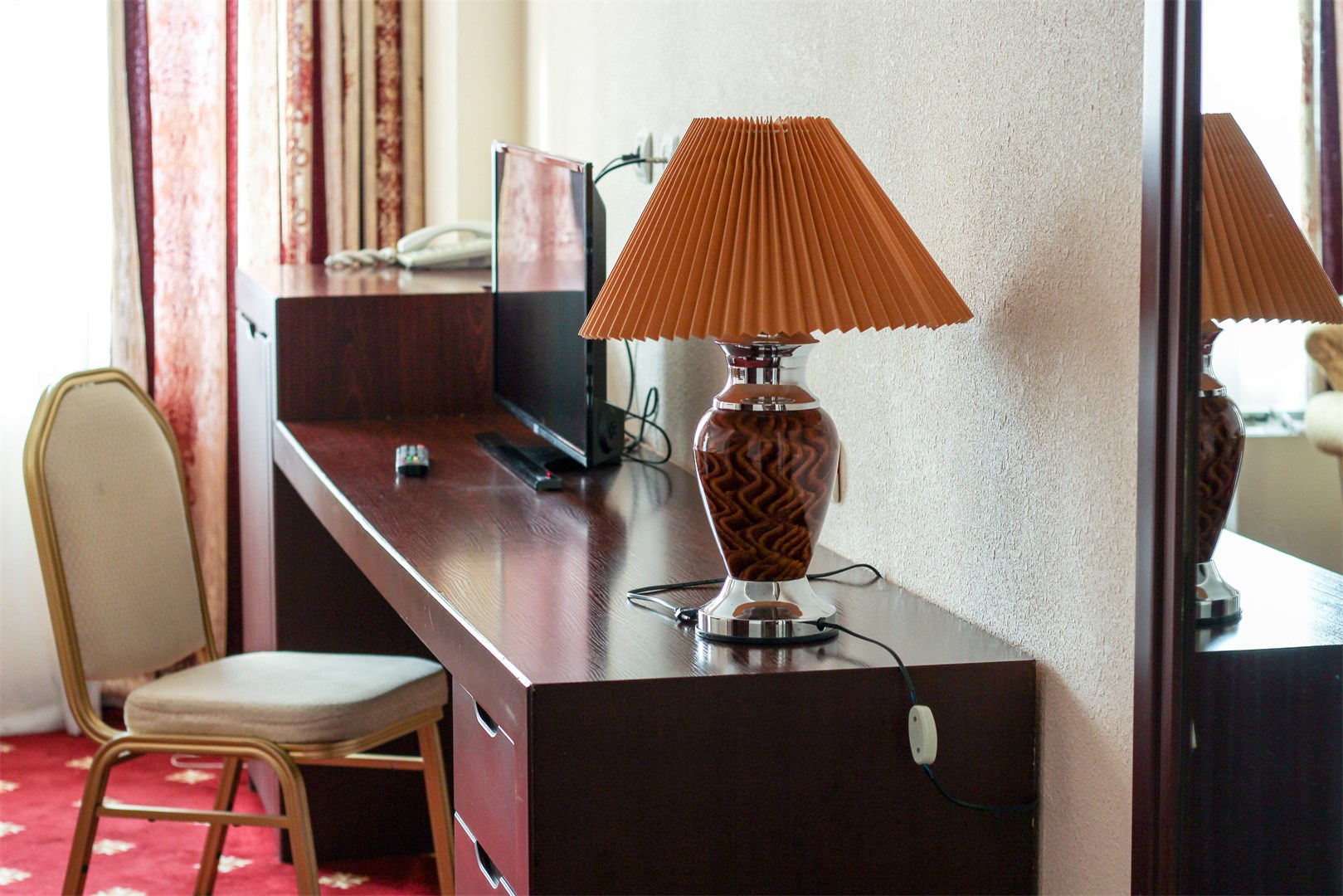 В номере: кровать двуспальная, гардеробная, зеркало, кресло, стул, шкаф-купе, письменный стол, вешалки, шкаф для одежды, кондиционер, телевизор, телефон, сейф