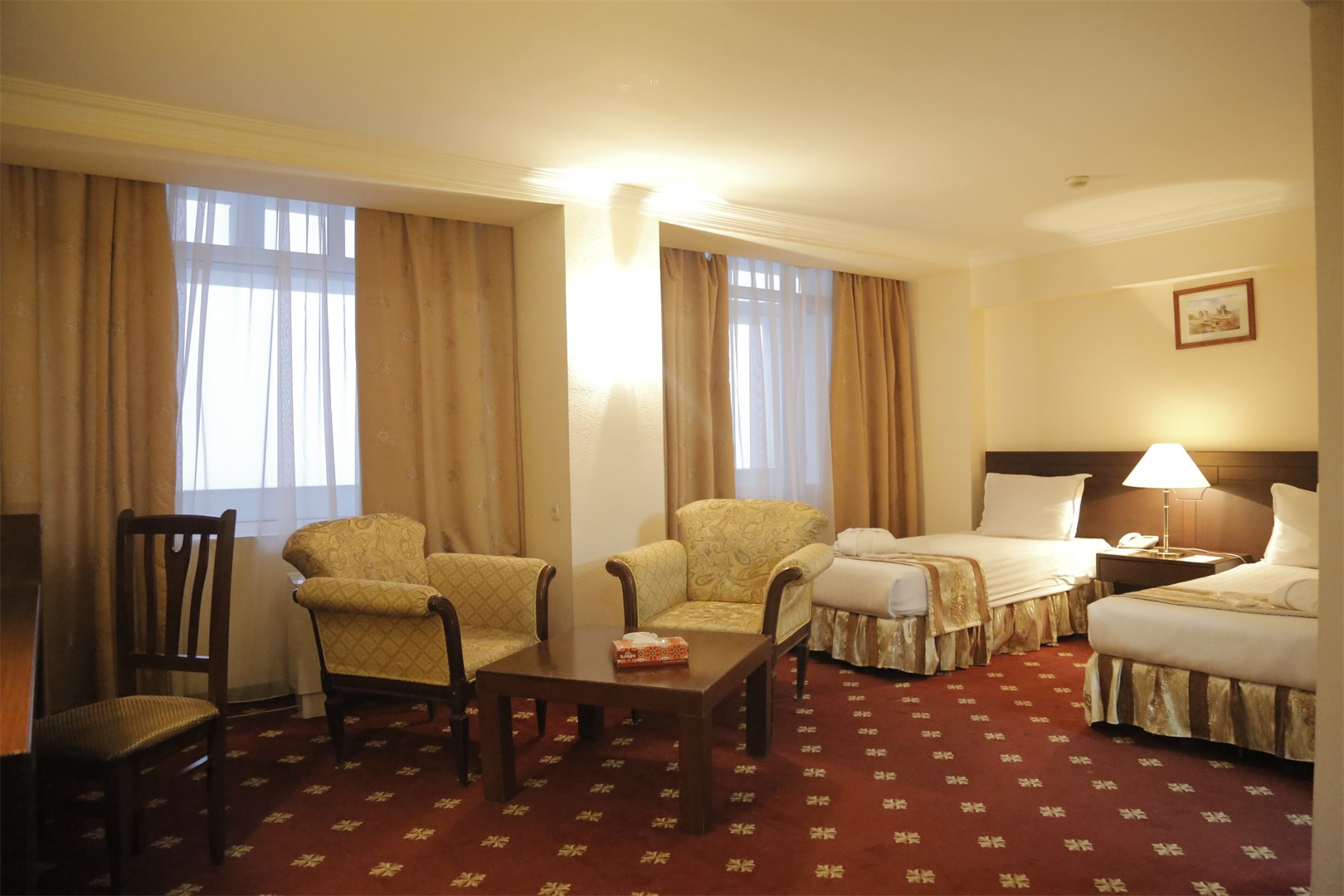 В номере: двуспальная кровать, односпальная кровать, гардеробная, зеркало, кресло, стул, шкаф-купе, диван, стол, стулья, кресла, шкаф для одежды, кондиционер, телевизор, телефон, сейф, мини-бар, мини-холодильник