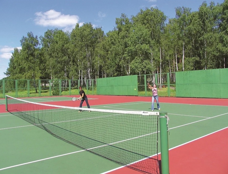- Открытые площадки: волейбольная, теннисный корт, футбольное поле