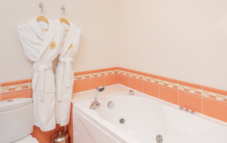 Санузел: джакузи, ванна, душевая кабина или ванна, раковина, унитаз, фен, тапочки, туалетные принадлежности
