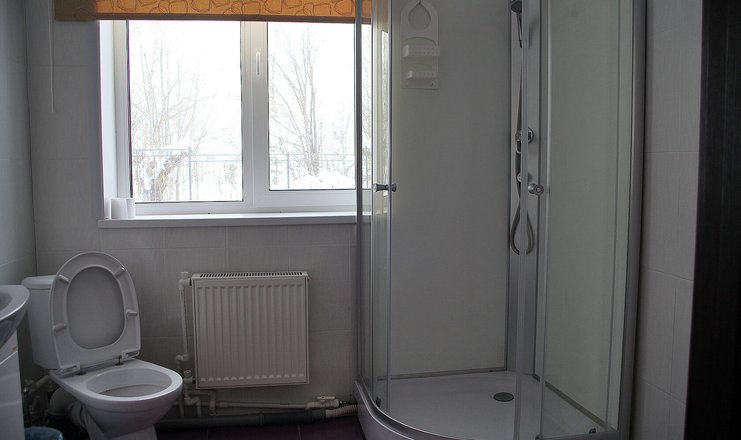 Санузел: с душевой кабиной, тапочки, фен, халат
